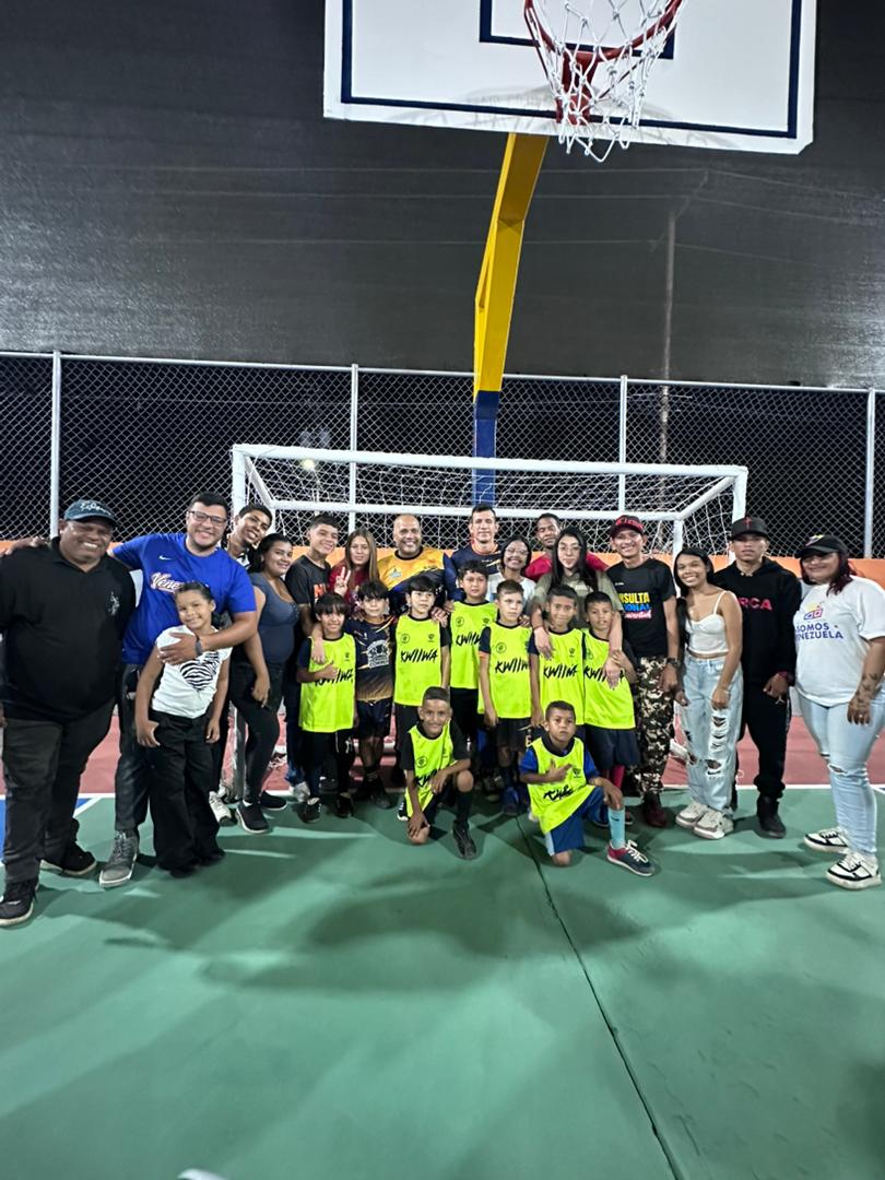 Durante el acto, el Alcalde estuvo acompañado de la Primera Combatiente Yamileth Olivares de Carreño junto a su equipo de trabajo, del Poder Popular del sector, y miembros de las comunidades aledañas y sobre todo de los niños pertenecientes a diferentes escuelas y equipos deportivos que hacen vida en este sector quienes estrenaron las instalaciones con un partido de fútbol sala.